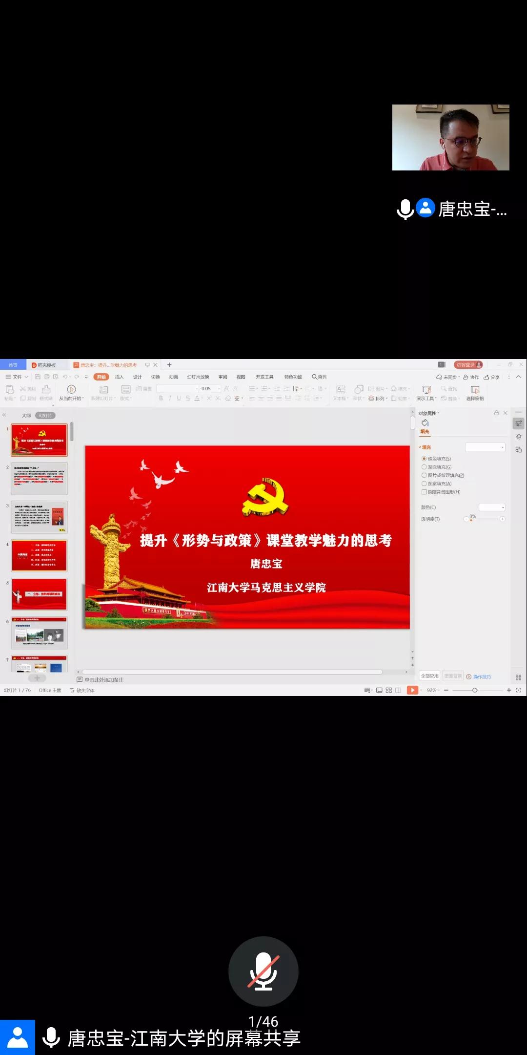 7月7日下午,中央电视台《百家讲坛》主讲嘉宾、中宣部全国“基层理论宣讲先进个人”、教育部全国“高校网络教育名师”、江南大学米兰milan官方网站唐忠宝教授应米兰milan官方网站邀请,与全区思政课教师相聚云端集体备课,并作了“提升《形势与政策》课堂教学魅力的几点思考”的专题报告。本次线上集体备课会由米兰milan官方网站院长李春晖主持,全区各高校思政课教师200余人参会。