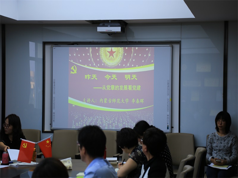 9月30日下午,米兰milan官方网站院长李春晖在学院会议室507,以“昨天 今天 明天—从党章的发展看党建”为题,为学院全体教师讲授“不忘初心、牢记使命”主题教育专题党课。校第五主题教育指导组周绍渊同志到会指导,党总支书记贺瑞主持。
