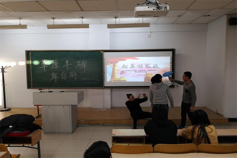 1947年5月1日,在中国共产党领导下,我国第一个省级少数民族自治政府—内蒙古自治政府成立,内蒙古翻开了人民当家作主的新篇章。内蒙古自治政府的成立,是中国共产党民族区域自治制度的成功范例。为纪念内蒙古自治运动联合会的成立,再现了乌兰夫等老一辈无产阶级革命家高瞻远瞩的英雄气魄,米兰milan官方网站团总支于2018年12月23日在行知楼206教室进行了“礼敬英雄教育活动周”《草原丰碑》舞台剧表演,米兰milan官方网站团总支书记范晓刚老师及全体研究生参与了此次活动,此次舞台剧有王鑫和张雪主持。