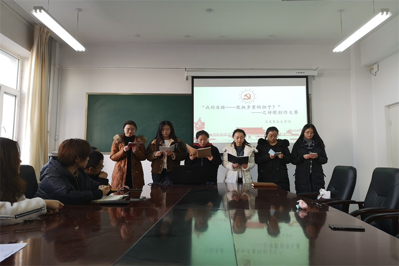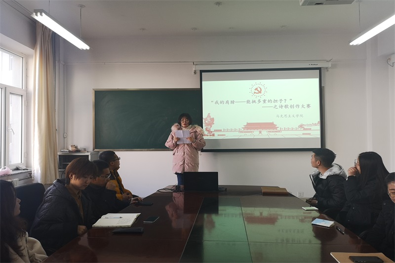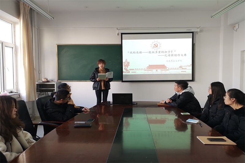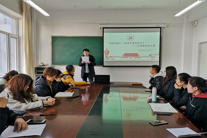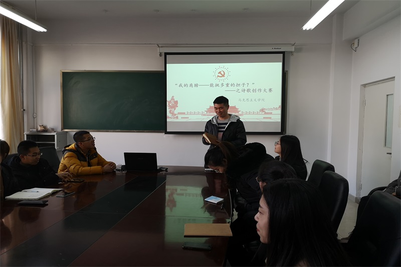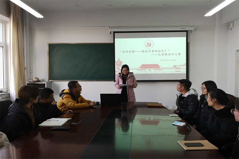 2018年12月18日中午,米兰官网在盛乐校区学院楼B216举办“诗歌创作”活动。团支部书记范晓刚老师及研一、研二全体研究生参加了本次活动。