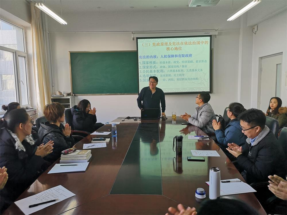 2018年12月4日是第五个国家宪法日,银福成老师应邀在盛乐校区学院B区216为米兰官网学生做了“弘扬宪法精神,增强宪法意识”暨我的肩膀——能挑多重的担子主题讲座。研一、研二全体研究生聆听了讲座。
