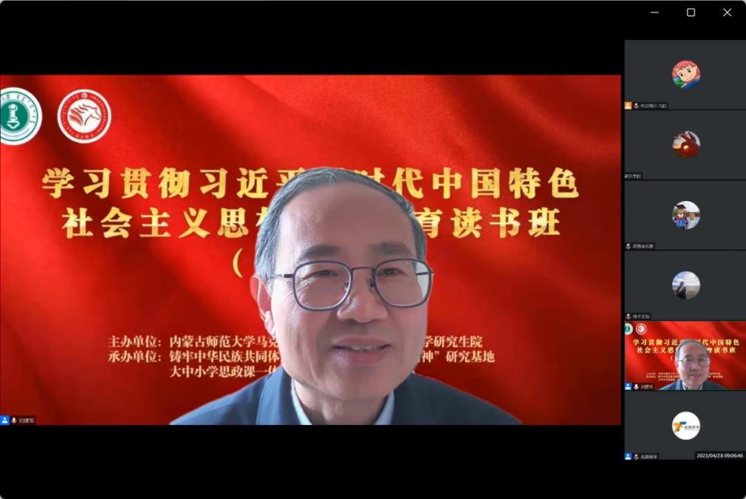 4月28日上午,米兰milan官方网站学习贯彻习近平新时代中国特色社会主义思想主题教育读书班(第五期)在线上召开。本次主题读书班邀请中国人民大学米兰milan官方网站博士生导师、马克思主义理论研究和建设工程思政课重点教材《马克思主义基本原理》首席专家,教育部长江学者特聘教授刘建军教授作题为“二十大报告中几个重大理论问题解读”的专题讲座。米兰milan官方网站副处级及以上干部、研究生院、米兰milan官方网站全院教职工、研究生参加学习。