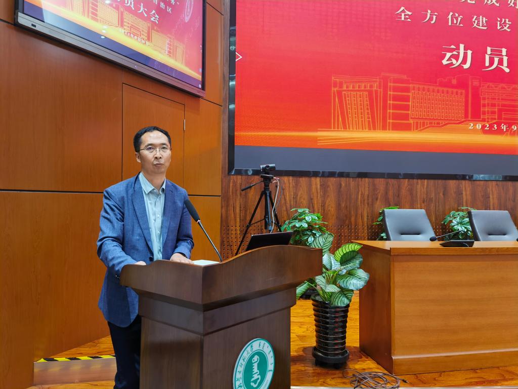9月25日下午,米兰官网在信息楼报告厅召开凝心聚力完成好五大任务、全方位建设“模范自治区”动员大会。学院党政领导班子出席会议。会议由米兰官网党委副书记、院长齐义军主持,学院全体教师参加会议。
