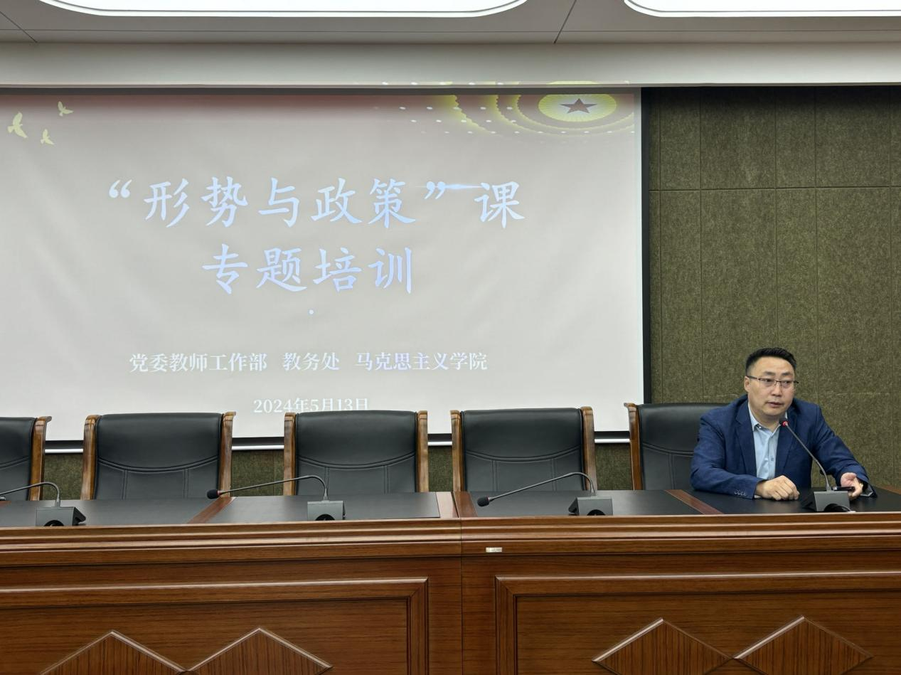为深入学习贯彻习近平新时代中国特色社会主义思想,认真落实教育部社科司《关于做好2024春季学期全国高校“形势与政策”教学工作的通知》,进一步加强“形势与政策”课程建设,米兰milan官方网站于5月13-14日在赛罕区文史楼1号会议室组织召开2023-2024学年第二学期“形势与政策”课专题培训。会议由米兰官网副院长钢特木尔主持,各学院“形势与政策”课程教学小组成员共60余名教师参加此次培训。