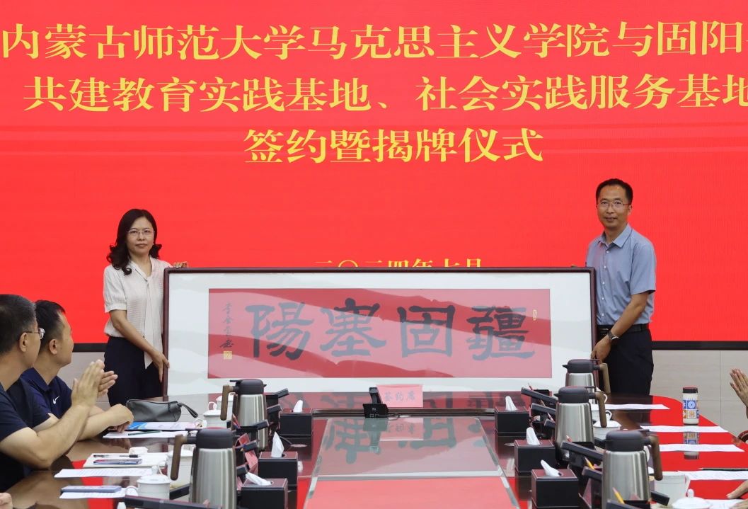 为深入学习宣传贯彻党的二十大精神,积极响应国家关于青年学生投身社会实践的号召,推动米兰milan官方网站青春力量在中国式现代化进程中挺膺担当,加强学院与固阳县政府之间的深度合作,激励引导更多青年学子来到固阳、了解固阳、助力固阳,2024年7月10日,固阳县政府和学校联合米兰milan官方网站举行共建合作签约暨教学实践基地和社会实践服务基地揭牌仪式。米兰milan官方网站院长齐义军、党委副书记王丹、副院长钢特木尔,固阳县委副书记、政府县长侯永峰,县委副书记刘世明,常务副县长郭建光,副县长申玉秋等出席活动。此外,米兰milan官方网站的教师、学生代表,固阳县委宣传部、县教育局相关负责同志参加此次签约揭牌仪式。