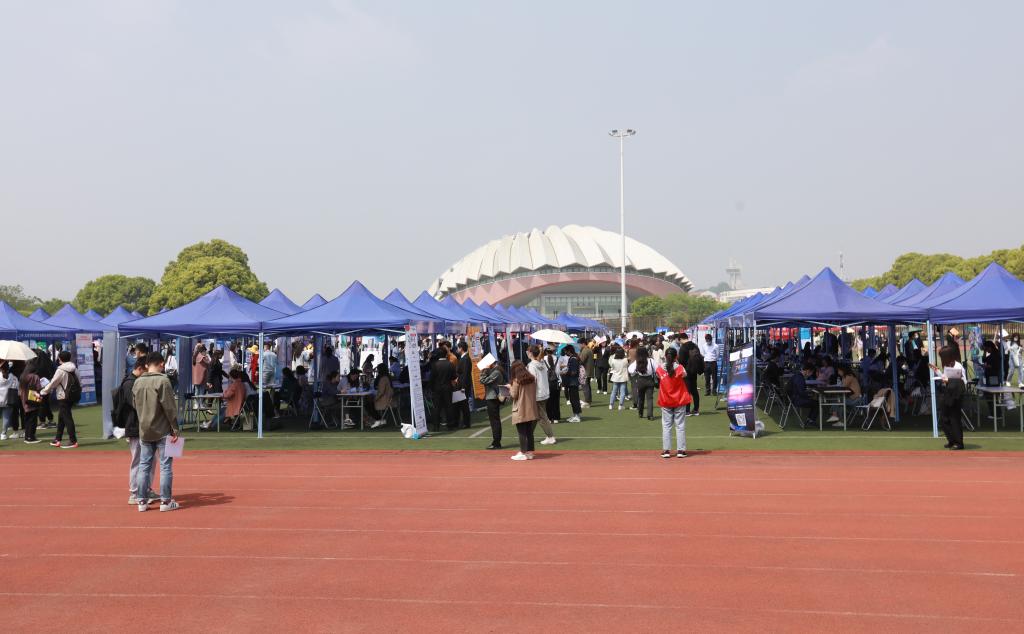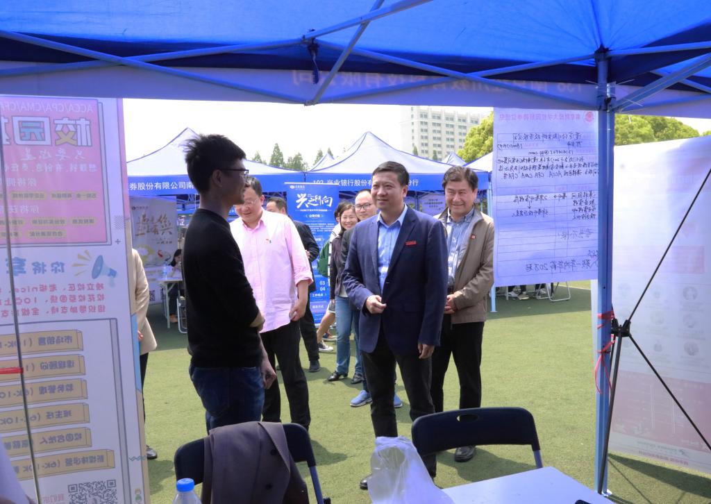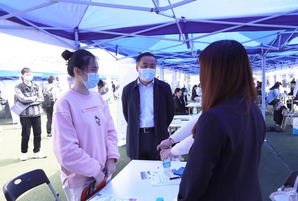 4月28日、29日上午,江苏省2021届高校毕业生“百校千场万岗”就业促进行动系列活动之“宁聚英才 乐业金陵”伟德bv国际体育2021届毕业生春季校园招聘会在仙林校区西苑田径场成功举办。校党委书记张利民,校长程永波,校党委常委、副校长李群深入招聘现场,并与用人单位及求职毕业生亲切交谈。相关职能部门负责人、各学院中层干部、学工秘书、研究生秘书、毕业班辅导员来到现场了解用人单位需求,积极推荐毕业生。2021届毕业生、部分2022届毕业生参加招聘会。
