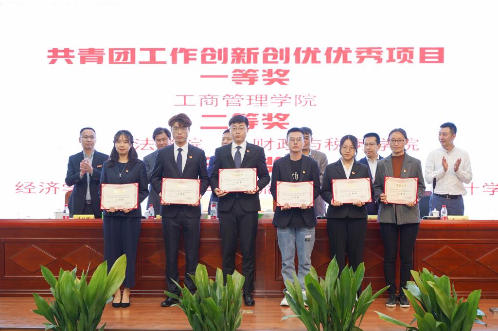 “五四红旗分团委”获得单位代表、金融学院张雨薇老师以及“五四红旗团支部”书记代表、会计学院金滟同学先后上台发言,分享了他们的工作经验并表达了砥砺前行、继续奋斗的决心。