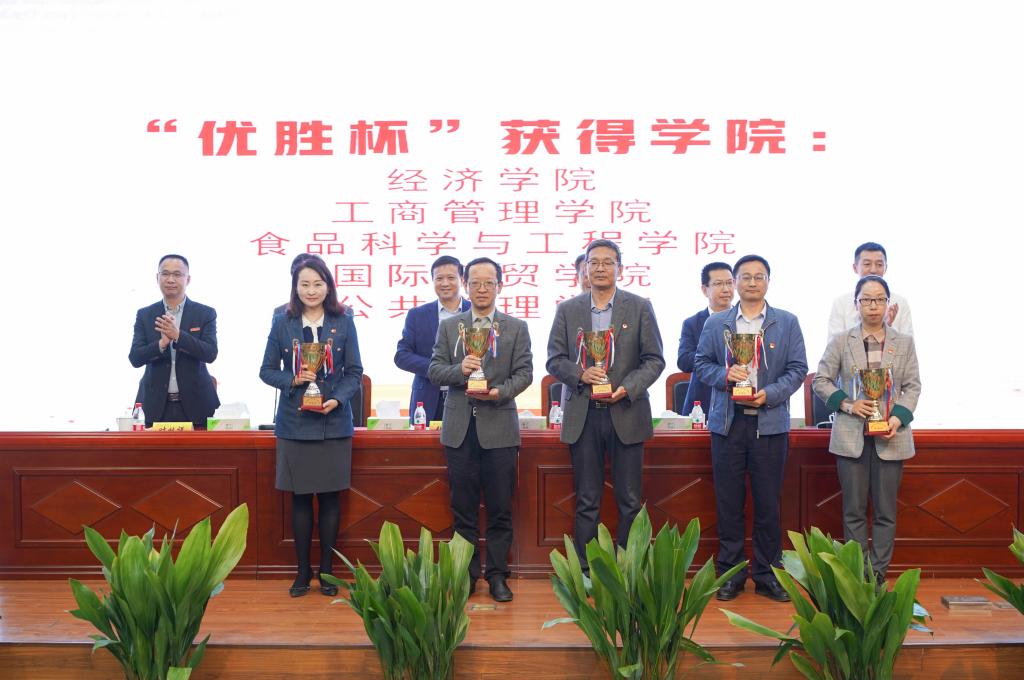 第十届“挑战杯”伟德bv国际体育大学生课外学术科技作品竞赛“挑战杯”“优胜杯”获得学院代表上台领奖