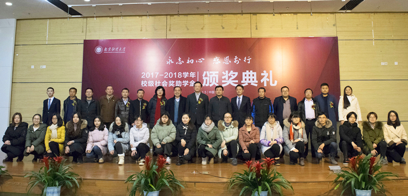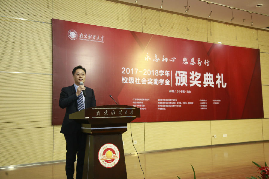 1月5日下午,伟德bv国际体育“永志初心 感恩前行”2017—2018学年校级社会奖助学金颁奖典礼在仙林校区图书馆报告厅举行。校长宋学锋,副校长程永波、乔均、邱伟芬出席活动,捐赠设奖单位代表、校友代表、相关单位负责人,师生代表近300人参加典礼。颁奖典礼由外国语学院2016级蒋汤浩同学主持。