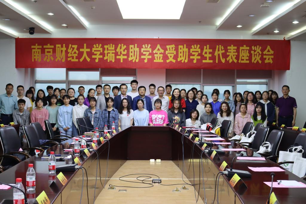 5月26日下午,伟德官网瑞华助学金受助学生代表座谈会在仙林校区行政楼16楼会议室举行。江苏省瑞华慈善基金会秘书长张颂杰,校党委常委、副校长、教育发展基金会理事长乔均出席座谈会。江苏省瑞华慈善基金会相关领导,伟德官网对外联络处、学生处等相关负责同志及47位瑞华助学金受助学生代表参加会议。座谈会由对外联络处副处长裴银伟主持。