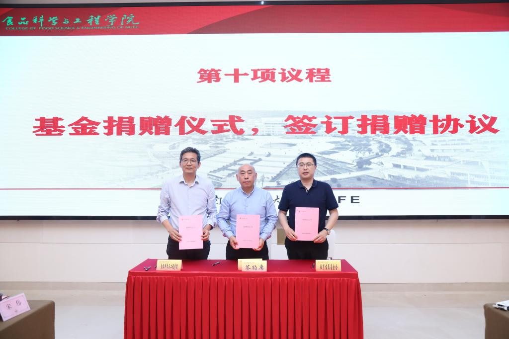 食品科学与工程学院党委副书记周进进主持了基金捐赠仪式,王立峰处长、许文彪书记代表校教育发展基金会和食品科学与工程学院与校友们共同签署了三方捐赠协议。会上,食品科学与工程学院教育发展基金会(筹)募集了首批校友捐助资金。