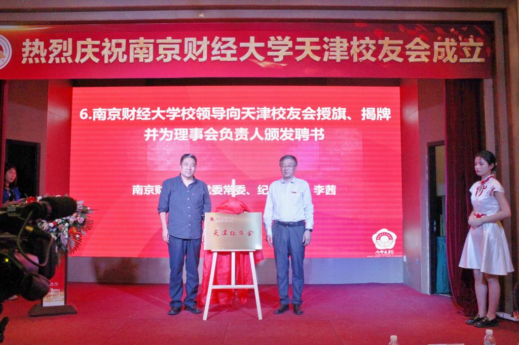 李茜书记代表学校向李振声会长授予天津校友会会旗,并和李振声会长共同为天津校友会揭牌。李茜书记为当选天津校友会负责人颁发了聘书。