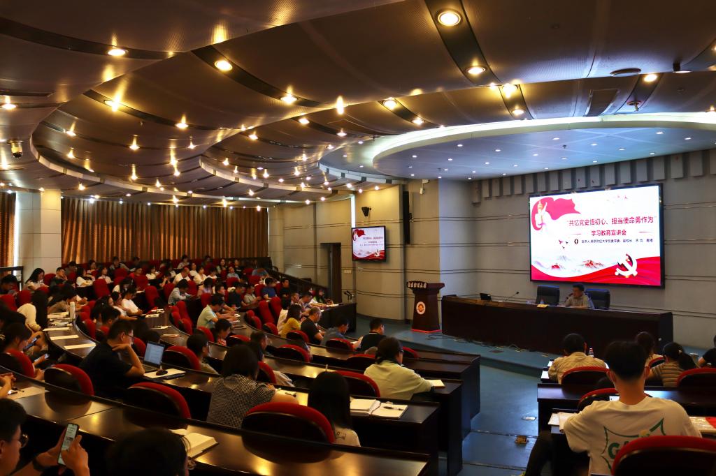 6月23日下午,党委常委、副校长乔均在仙林校区行政楼二楼报告厅讲授“共忆党史悟初心、担当使命勇作为”党史学习教育主题党课。对外联络处、信息化建设管理处、图书馆、档案馆、学术期刊编辑部、工商管理学院、艺术设计学院教职工党员代表、工商管理学院研究生党支部全体师生党员以及相关部门的党外代表人士参加党课学习。