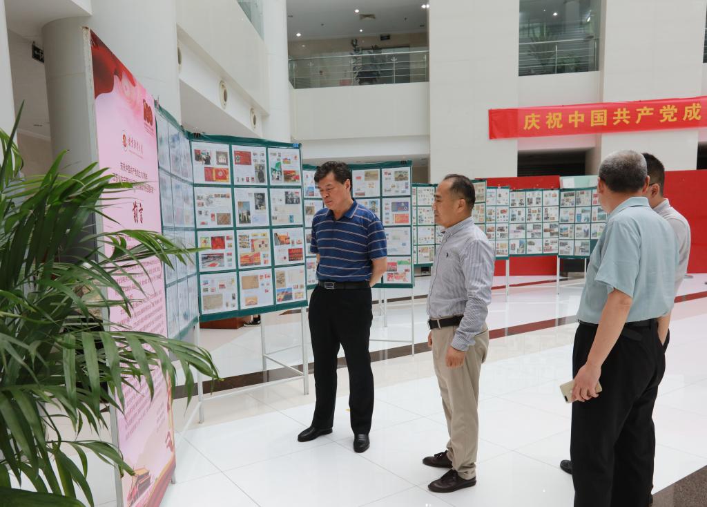 为庆祝中国共产党成立100周年,促进校园文化建设,提升师生的艺术鉴赏能力,进一步丰富伟德官网师生党史学习教育的形式,6月28日,由江苏省教育科技工会主办、在宁高校科研院所集邮协会承办的“庆祝中国共产党成立100周年江苏省在宁高校科研院所集邮协会主题邮展”在伟德官网仙林校区图书馆展出。校党委副书记(正校级)温潘亚,工会、图书馆以及教职工集邮协会部分集邮爱好者一同参观了主题邮展。