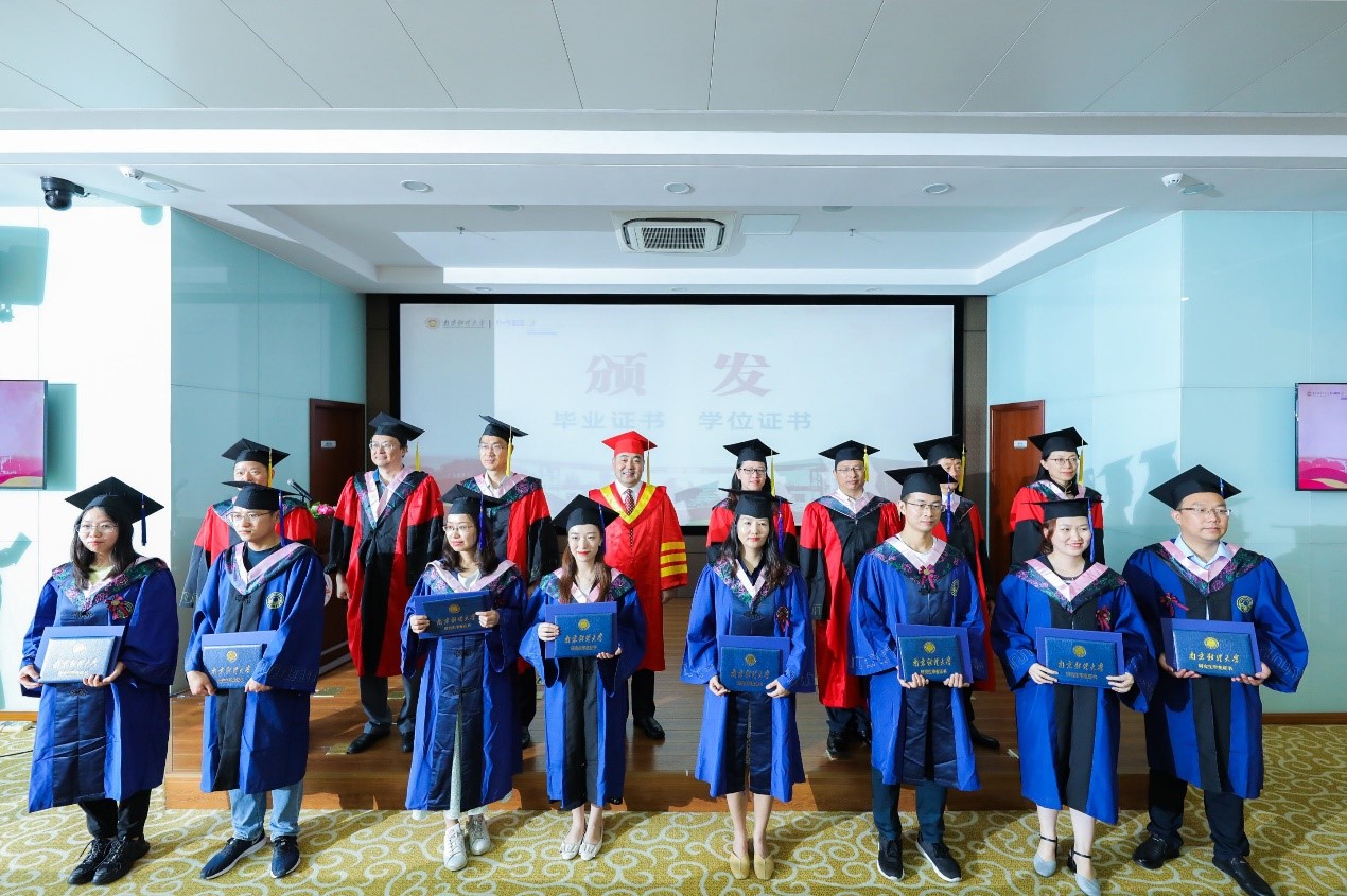 怀着激动又不舍的心情,毕业生们依次登上主席台,程永波校长和导师代表为毕业生们拨穗正冠、授予学位并合影留念。