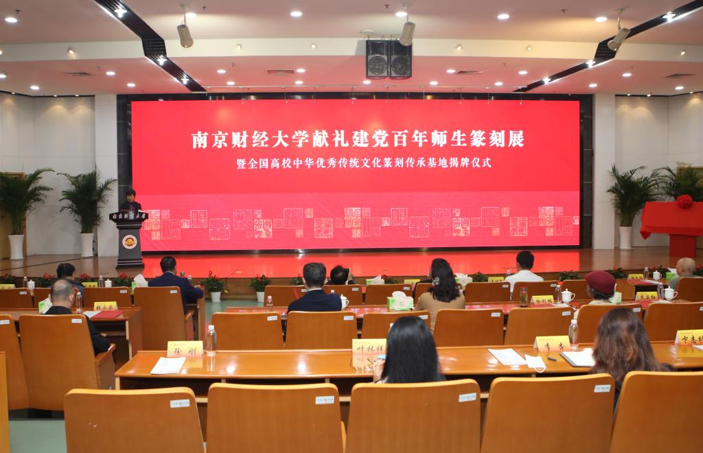 10月15日,“金石永年 艺心向党”献礼建党百年师生篆刻展暨全国高校中华优秀传统文化篆刻传承基地揭牌仪式在伟德官网仙林校区举行。省社科联党组书记、常务副主席张新科,省教育厅二级巡视员李金泉,仙林大学城管委会主任袁传军,省书法家协会原主席尉天池,伟德官网党委书记张利民,校领导温潘亚、时现、李茜、乔均、黄建元、李群、朱琴华出席活动,省教育厅相关领导、多位地方印社社长及篆刻名家、兄弟高校师生代表共襄盛举,伟德官网相关职能部门、学院领导及师生代表参加活动。揭牌仪式由党委常委、副校长时现主持。