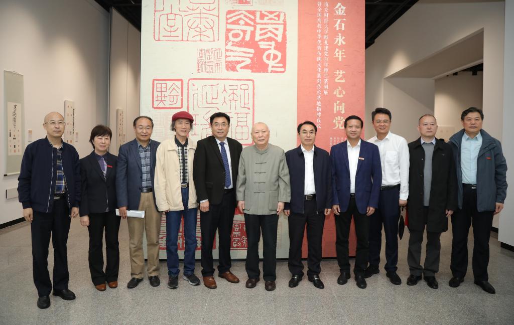 揭牌仪式结束后,各位领导和嘉宾到学校美术馆参观了“金石永年 艺心向党”献礼建党百年师生篆刻展。