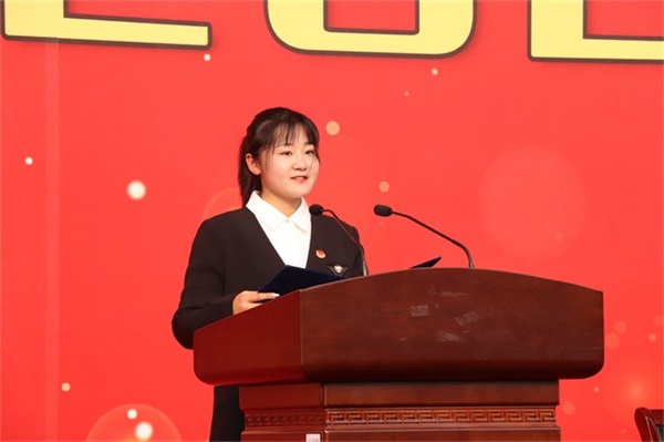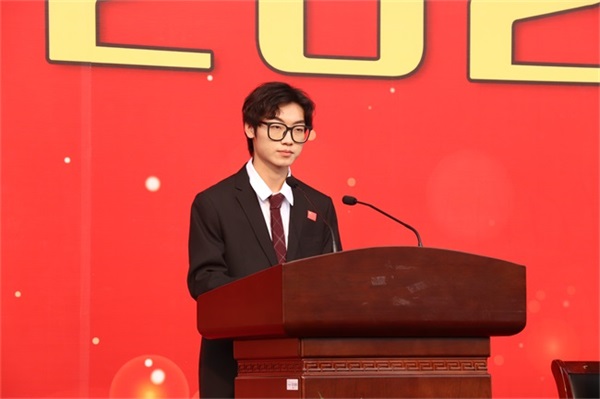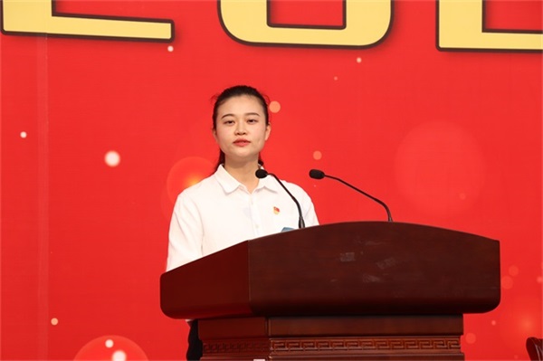2020级金融2051班任思佳代表在校生发言。她激励同学们树立目标,奋斗进取;追求真理,提升素质;宽以待人,感恩他人,为实现中华民族伟大复兴贡献自己的力量。