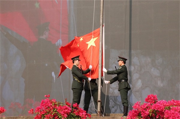 在雄壮有力的国歌声中,鲜艳的五星红旗冉冉升起,全场师生齐唱国歌,开学典礼正式拉开帷幕。
