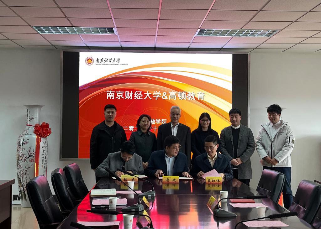 最后,对外联络处、高顿教育、金融学院三方代表签订捐赠协议并合影留念。