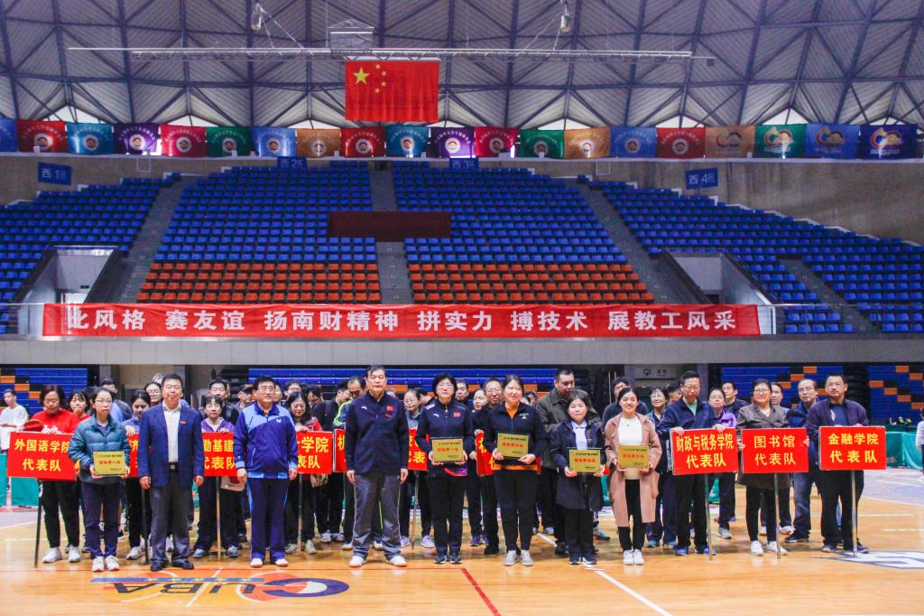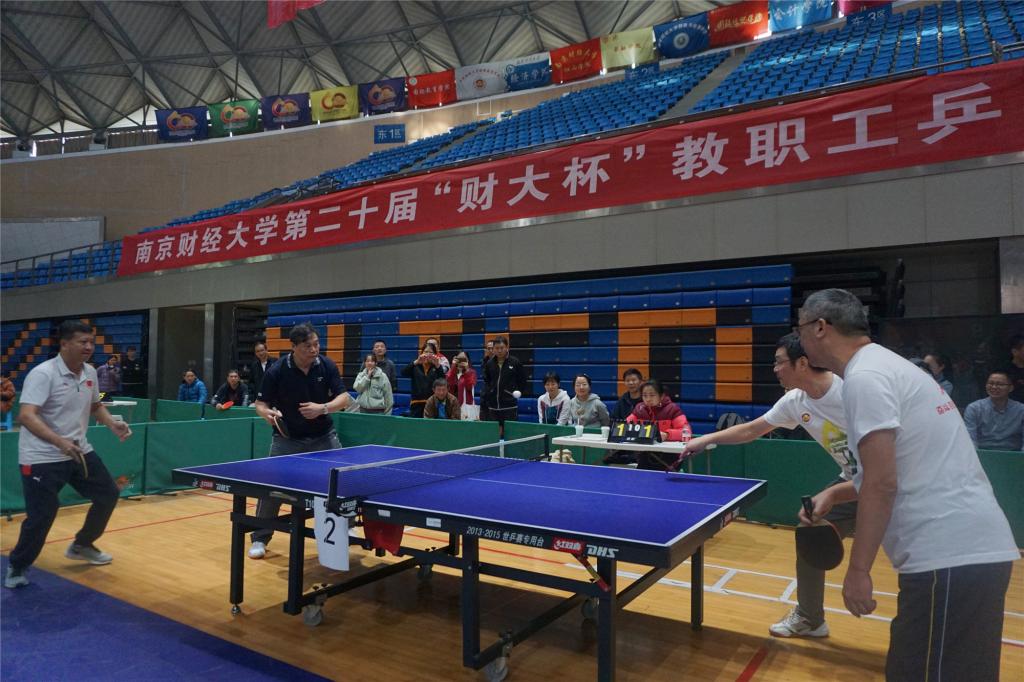 初冬暖阳映校园,高手切磋聚球场;拼技斗勇小银球,强健体魄活力扬。11月20日,由校工会主办,体育部、校大学生乒乓球协会协办的第二十届“财大杯”教职工乒乓球比赛在仙林校区体育馆举行。由校党委书记张利民为领队,校党委副书记温潘亚(正校级)为教练,党委常委、副校长时现、乔均、邱伟芬、张为付为队员组成的校领导代表队全程参与比赛,与来自各分工会的21支代表队近170名老师们同场竞技,共享乒乓的激情与快乐。温潘亚副书记致开幕词并宣布比赛开始。开幕式由校工会主席冯玉川主持。