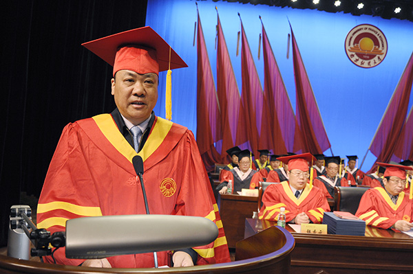 副校长王开田教授主持毕业典礼暨学位授予仪式 校摄协 保险12级 李凯瑞/摄