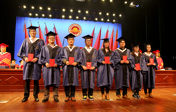 全体校领导为获得硕士学位的全体研究生颁发了硕士学位证书 校摄协 保险12级 李凯瑞/摄