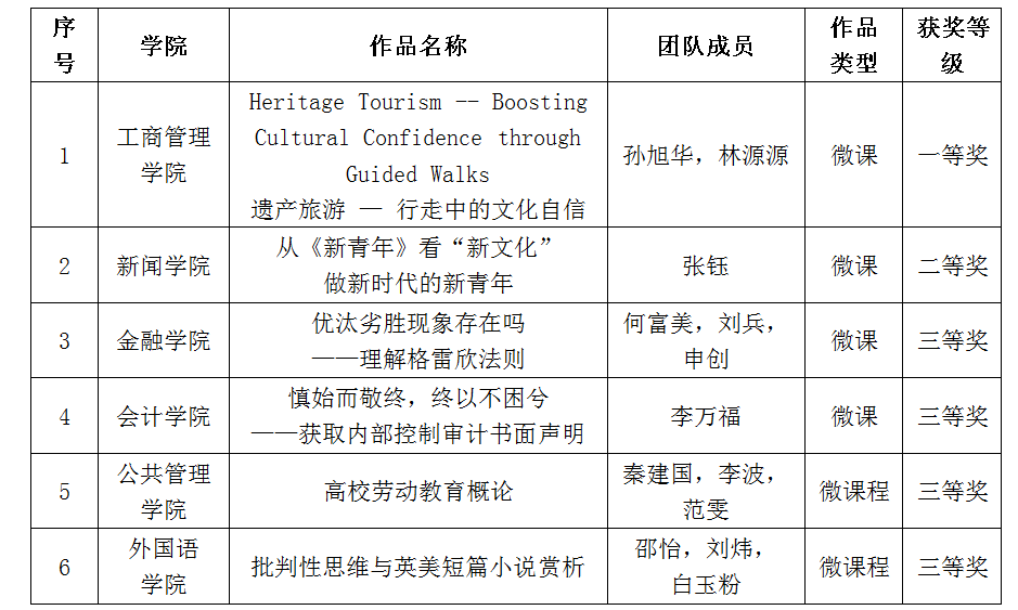 近日,2021年江苏省高等学校微课教学比赛评选结果公布。伟德官网有6件作品获奖,其中孙旭华老师的作品《Heritage Tourism -- Boosting Cultural Confidence through Guided Walks/遗产旅游——行走中的文化自信》获本科组一等奖,张钰老师的作品《从<新青年>看“新文化”,做新时代的新青年》获本科组二等奖,何富美等4位老师的作品获本科组三等奖。