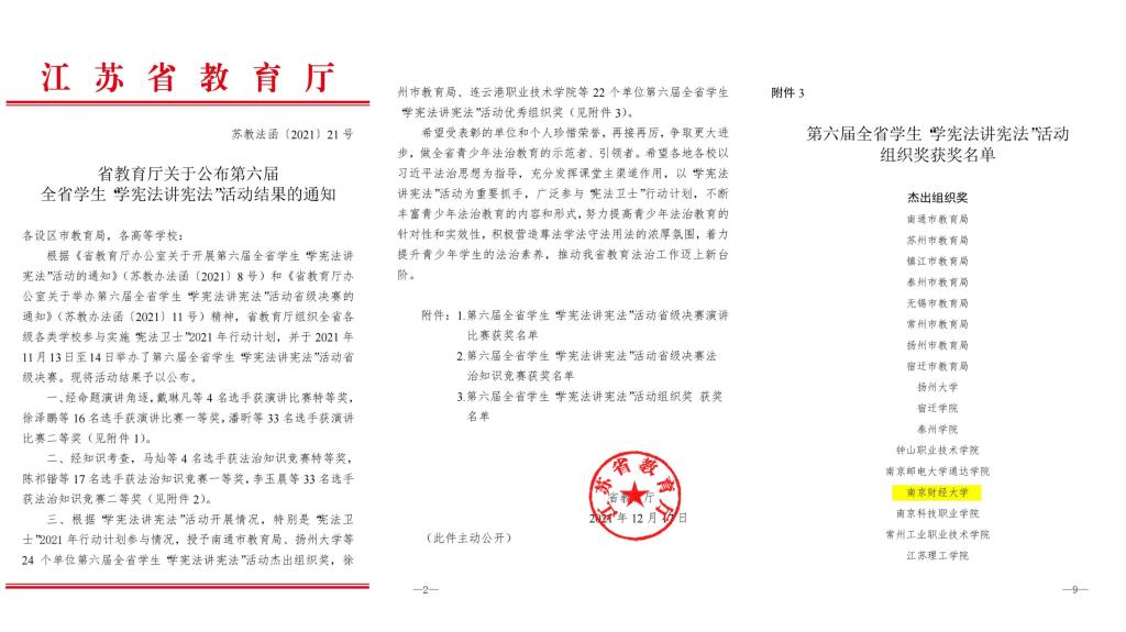 伟德官网获第六届全省学生“学宪法讲宪法”活动“杰出组织奖”