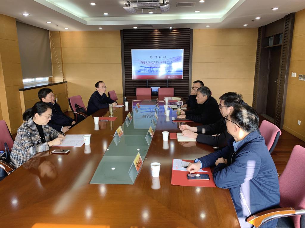 12月23日上午,南通大学党委常委、纪委书记、派驻监察专员陆国平一行来伟德官网调研交流。伟德官网党委常委、纪委书记、派驻监察专员李茜在仙林校区行政楼1101会议室与来宾座谈。