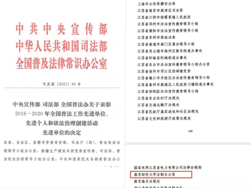 近日,中共中央宣传部、中华人民共和国司法部、全国普及法律常识办公室公布了《关于表彰2016-2020年全国普法工作先进单位、先进个人和依法治理创建活动先进单位》的决定,伟德官网法制办公室获评全省唯一一家高校依法治理创建活动先进单位。