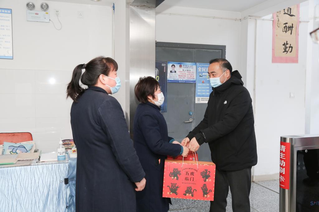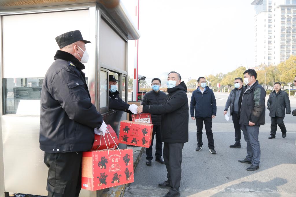 校领导先后来到行政楼大厅、博观楼监控室、中苑配电房、栖园宾馆、南大门、博观楼、德经楼、青教公寓等一线岗位进行走访慰问。校领导与物业、保卫和值班工作人员一一握手,热情交谈,了解他们的工作、生活情况,对大家在寒假期间坚守岗位、辛勤工作、敬业奉献,为学校的安全稳定作出的积极贡献表示感谢,并送去了新春祝福和节日慰问品。校领导详细询问了各岗位具体工作运行情况,叮嘱大家继续发扬优良作风,树牢安全意识,立足自身岗位、强化责任担当,做好疫情防控工作,加强对出入校园人员管理和排查,切实维护校园的安全和稳定。值班工作人员也纷纷表示,一定不负领导厚望,以高度的责任心和饱满的工作热情值好班、站好岗,把学校领导的关心转化为工作的强大动力,努力做好春节期间的安全保卫、后勤保障等各项工作,以实际行动和优质服务确保广大师生度过一个平安、快乐、祥和的假期。