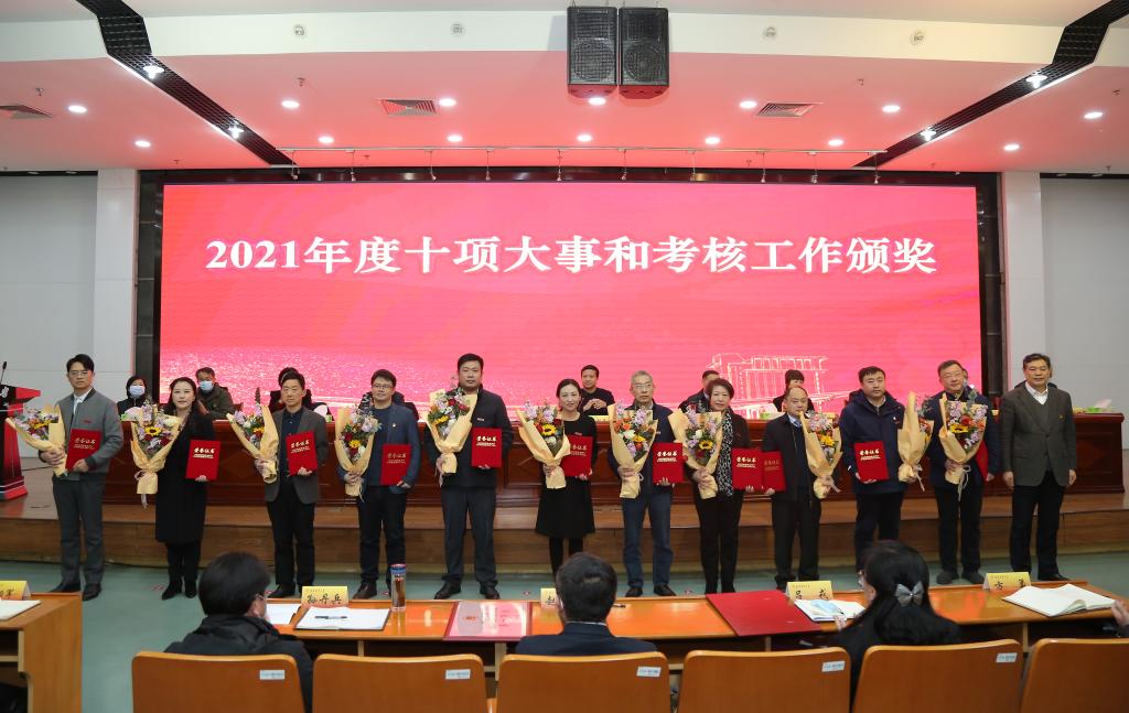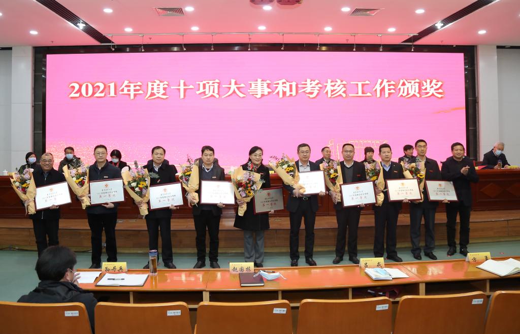 会上,校党委副书记温潘亚通报了学校2021年度十项大事和年度考核情况。校长程永波,党委常委、副校长时现为学校2021年十项大事相关单位和个人颁奖。党委书记张利民、党委副书记温潘亚为2021年考核第一等次单位以及表现优秀的单位颁奖。