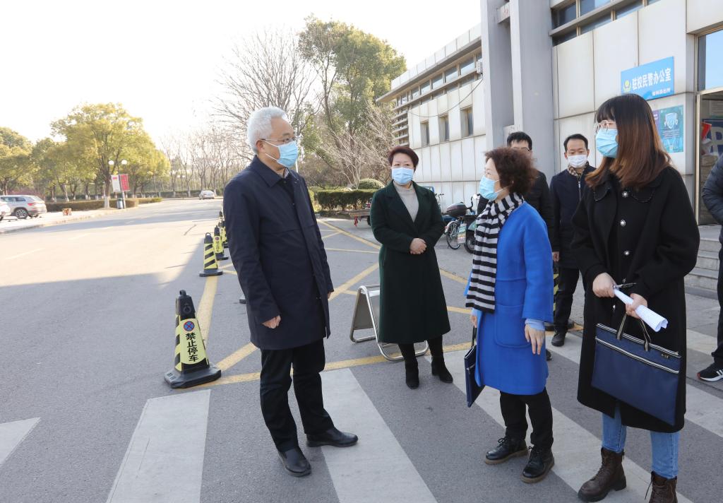 2月27日,江苏省卫生监督所学校卫生监督处处长冯向明一行来伟德官网督导检查疫情防控工作。党委常委、副校长张为付,党校办、学生处、研工部、保卫处、后勤基建处等相关部门负责同志陪同检查。