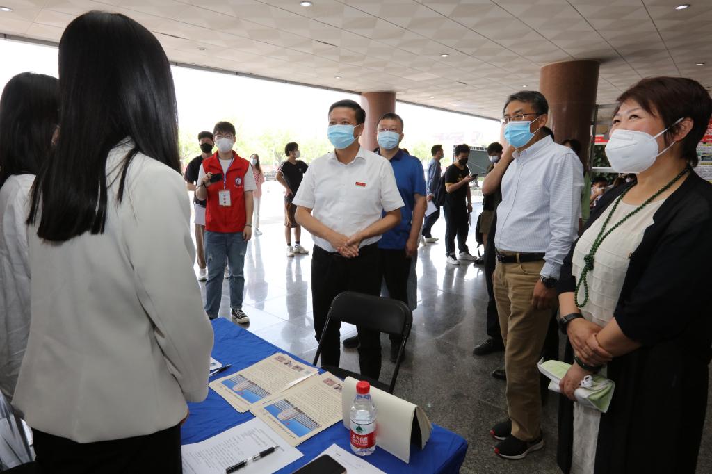程永波校长对招聘单位表示热烈欢迎,与前来参会的同学们深入交流,认真了解同学们的应聘情况和用人单位的招聘需求。程永波校长强调,要充分研判2022届毕业生就业形势,统筹做好疫情防控工作和就业工作。要结合学校不同专业毕业生、本科生和研究生就业特点,全面精准做好就业服务,为同学们更加充分更高质量就业保驾护航。