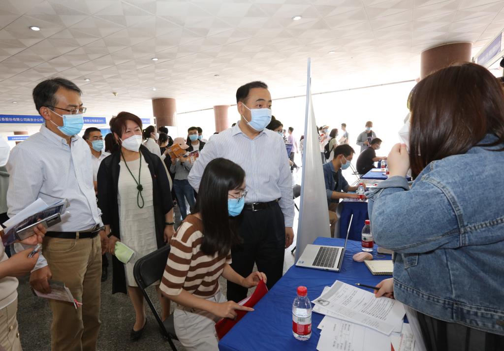 5月20日下午,伟德官网“访企拓岗促就业”栖霞区、秦淮区重点企业专场招聘会在仙林校区博观楼一楼大厅举办。校党委书记张利民,校长程永波,党委常委、纪委书记李茜,党委常委、副校长李群深入现场,与企业代表和学生亲切交谈。栖霞区人社局局长钱琍、秦淮区劳动就业管理中心主任黄炜一行莅临指导。各学院负责人和毕业班辅导员现场指导学生参加双选。2022届在宁毕业生、部分非毕业班学生参加招聘会。