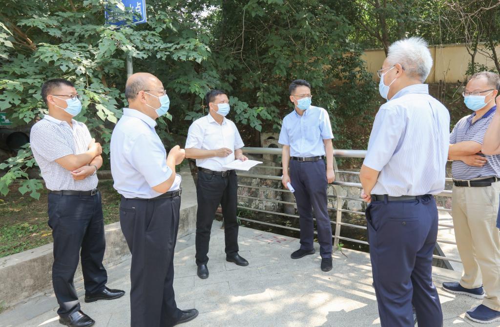 6月16日,仙林大学城管委会主任袁传军一行来伟德官网检查雨水排口现状,指导雨污分流改造工作。校党委书记张利民,党委常委、副校长张为付,党委办公室、校长办公室,后勤基建处相关负责同志陪同检查。