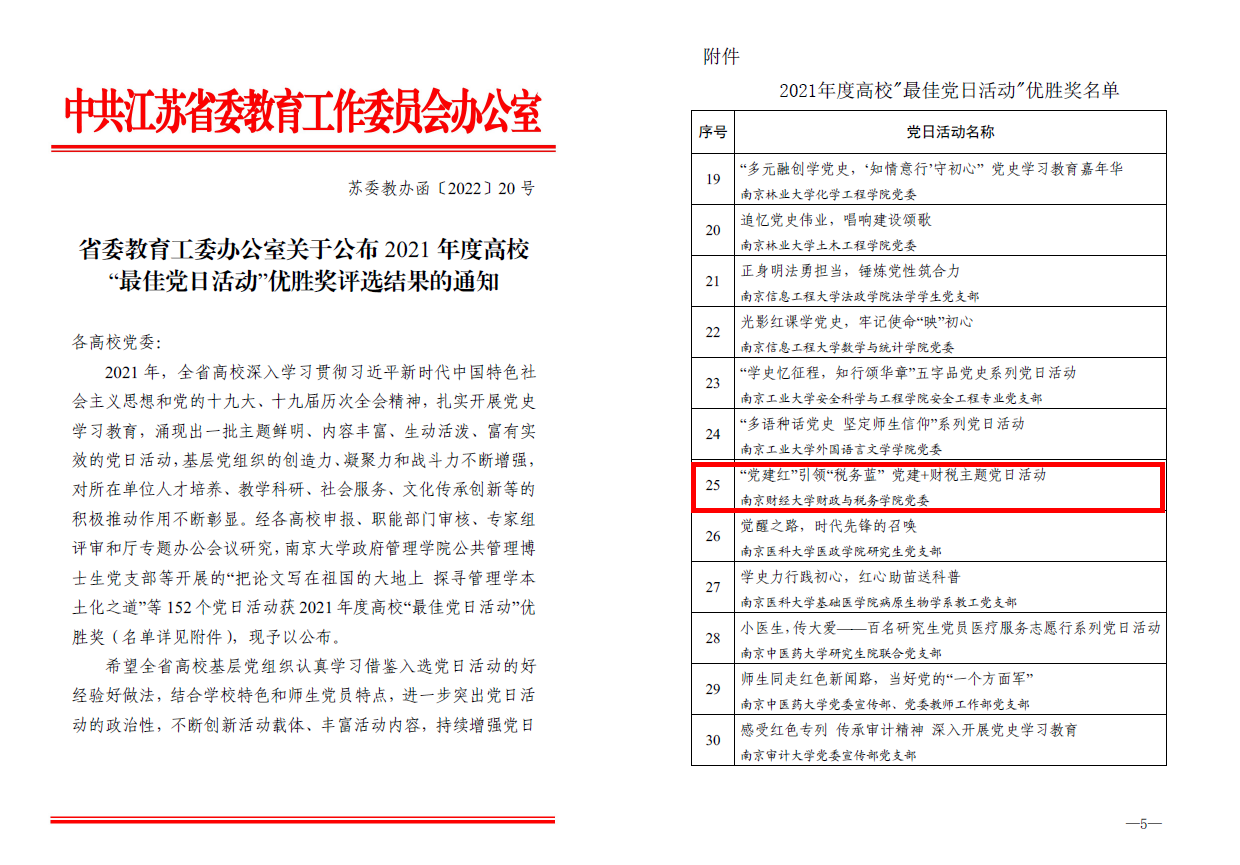 据悉,为总结推广高校开展主题党日活动的经验做法,省委教育工委每年组织开展高校最佳党日活动评选。今年经各高校党委推荐、专家组评审和省教育厅专题办公会研究,共评选出2021年度“最佳党日活动”优胜奖152项。