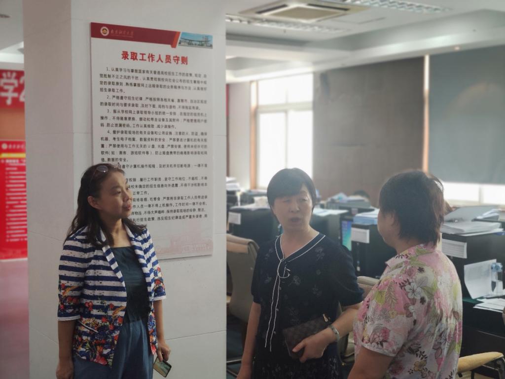 党委常委、纪委书记李茜,党委常委、副校长李群现场检查指导本科招生录取工作