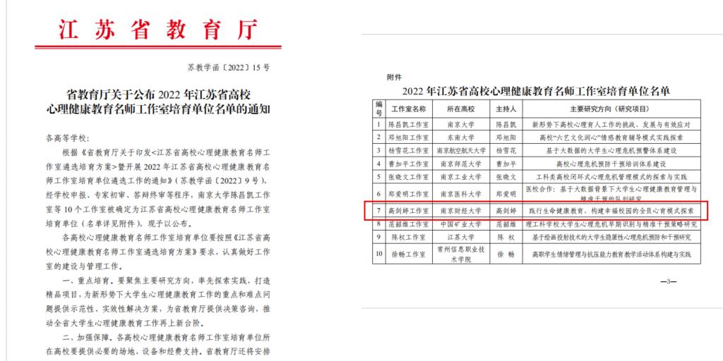 伟德官网获评“江苏省高校心理健康教育名师工作室培育单位”