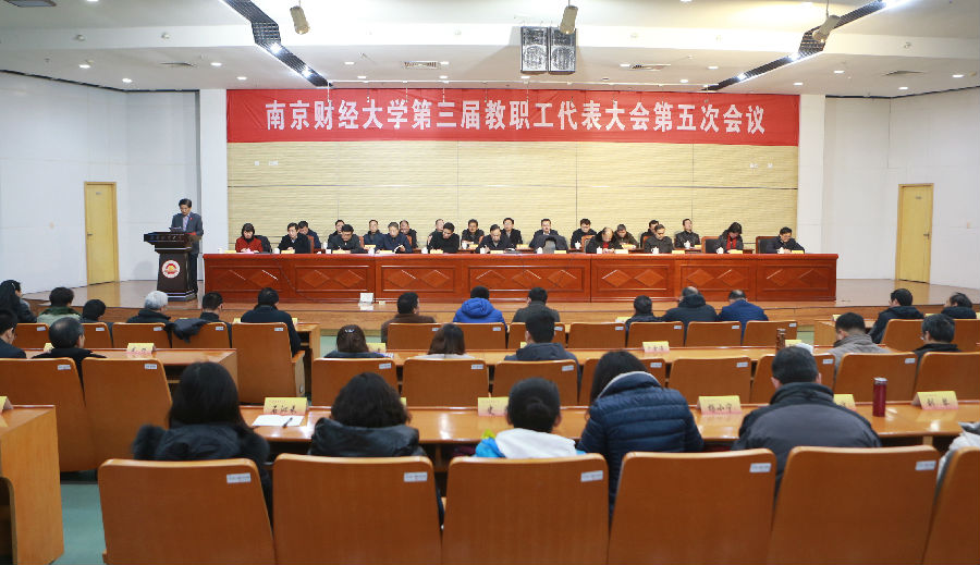 1月24日下午,伟德官网第三届教职工代表大会第五次会议在仙林校区图书馆报告厅召开。全体在校校领导、大会主席团成员在主席台就坐,正式代表157人参加会议,中层干部、基层工会主席、各民主党派及统战团体负责人、各级人大代表、政协委员列席会议。会议由副校长时现主持。