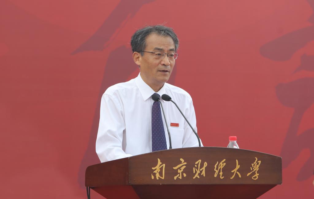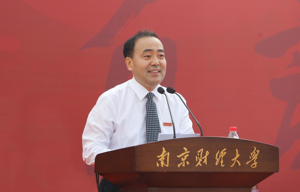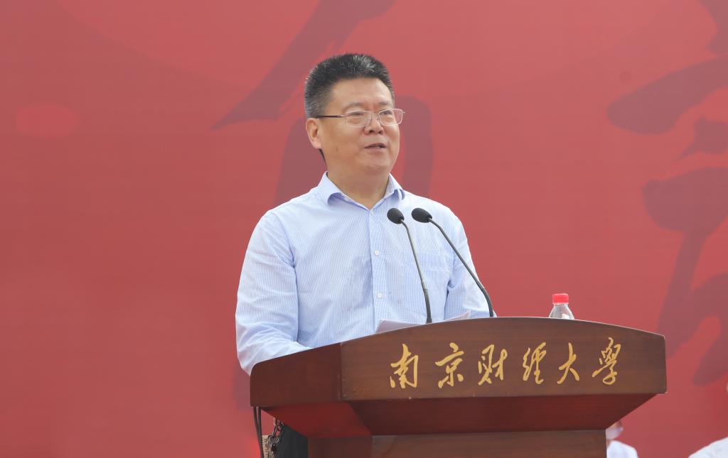 教师代表、国际经贸学院副教授谭用发言。他希望同学们不忘初心、攻坚克难,仰望星空、脚踏实地,热爱生活、把握平衡,用自己的青春和汗水,将我们的国家建设得更加美好、更加令人期待。