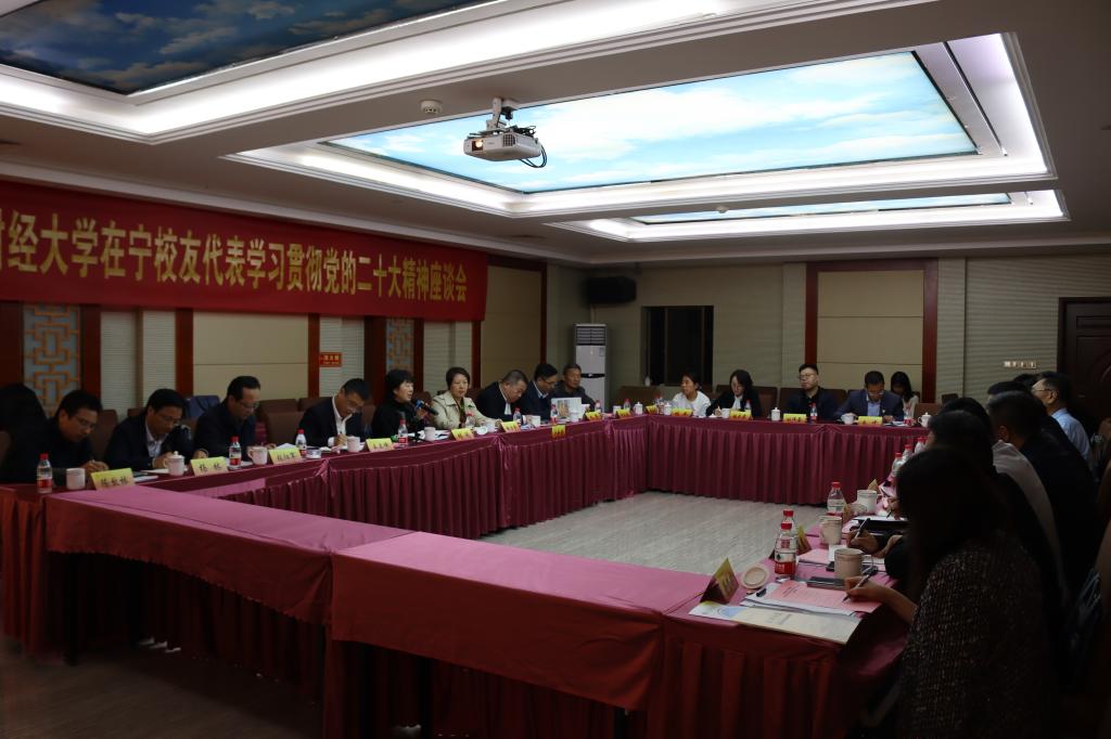 10月25日下午,由校友总会主办、南京校友会承办、会计学院校友会等8家学院校友会协办的“共话心声 同向未来——伟德bv国际体育在宁校友代表学习贯彻党的二十大精神座谈会”在南京召开。党委常委、副校长时现出席会议,南京校友会会长、经营管理83级校友张先平,国际经贸学院校友会会长、粮食经济87级校友袁华山,营销与物流管理学院校友会会长、市场营销94级校友李兴华,以及南京校友会、会计学院校友会、信息工程学院校友会、公共管理学院校友会、食品科学与工程学院校友会、工商管理学院校友会、MBA校友会负责人代表,学生处、教务处、对外联络处、国际经贸学院、会计学院、工商管理学院、食品科学与工程学院、信息工程学院、MBA中心、营销与物流管理学院、公共管理学院相关负责人等参加会议。会议由对外联络处处长王立峰主持。