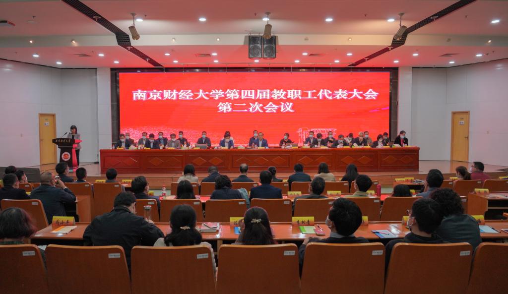 校长程永波作了题为“团结奋斗 勇毅前行 奋力书写学校高质量发展新答卷”的学校工作报告。报告指出,四届一次教代会召开后的近两年时间里,学校坚持党对学校事业的全面领导,围绕立德树人根本任务,立足特色鲜明高水平财经大学建设目标,凝心聚力、改革创新、开拓进取,统筹推进疫情防控和高质量发展,学校事业发展取得显著成效。一是瞄准跨越式发展目标,凝心聚力、攻克难关。学校获批博士学位授予单位,入选江苏高水平大学建设高峰计划B类建设高校,获批首个中外合作办学机构,取得一系列令人振奋的成绩。二是对标强内涵建设任务,稳扎稳打、再上台阶。学校在人才培养、学科建设、科学研究、社会服务、师资队伍建设、开放办学等领域,取得一系列令人可喜的成绩。三是面对保障性任务挑战,广谋良策、沉着应对。从严从实从细做好疫情防控各项工作,持续推进学校治理能力和治理体系建设,全面提升支撑保障力度,学校改革发展步伐迈得更加稳健。四是庆祝党的百年华诞、迎接党的二十大胜利召开,牢记使命、砥砺前行。深入学习宣传贯彻党的十九届六中、七中全会精神、党的二十大精神和省第十四次党代会精神,传承弘扬伟大建党精神,推动党史学习教育走深走实。