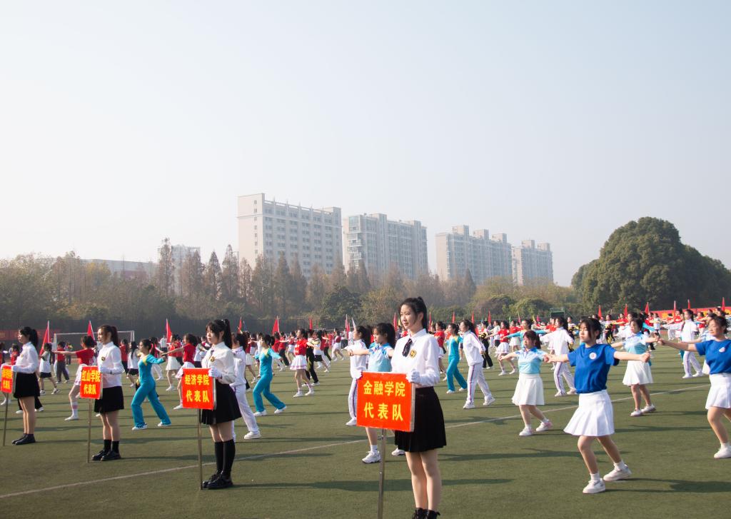 伴随着庄严的国歌声,国旗冉冉升起,庄重整齐的注目礼,彰显着南财学子的爱国热情;和着南财校歌的悠扬旋律,校旗和运动会会旗迎风飘扬,“自谦 自信 务实 超越”的校训精神在心中荡漾。