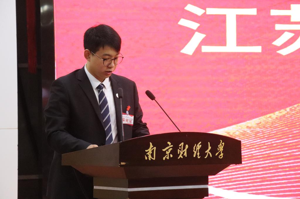 江苏省学生联合会驻会执行主席徐文豪同学代表省学联向大会召开表示祝贺