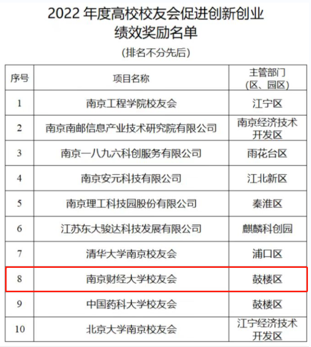 近日,南京市政府委托市科技局、市财政局对在2022年度促进创新创业工作中表现突出的高校校友会、校友企业进行了表彰。伟德官网获南京市高校校友会促进创新创业绩效奖励。据悉,全市共有10家单位获此绩效奖励,每家奖励金额50万元。