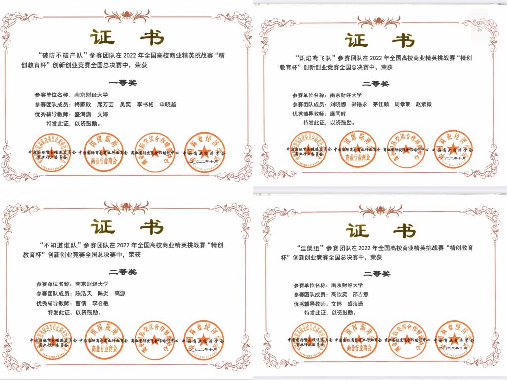 本科组比赛需要完成知识赛、校赛、区域赛、国赛四轮角逐,考验的不仅是赛事要求中的PPT和视频制作、商业计划书撰写、答辩等,更是对各参赛团队的学习能力与配合默契度的挑战。工商管理学院的师生团队顶住压力,发扬了严谨治学的态度,最终4支队伍皆突出重围,取得了可喜的成绩。
