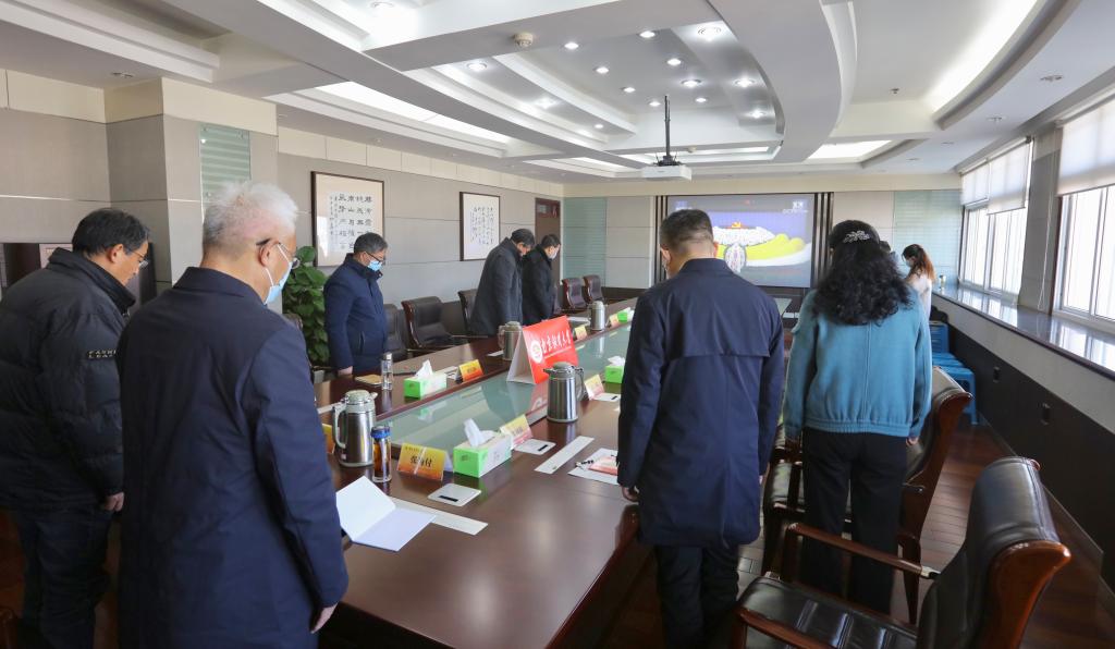 全体校领导、全体党委理论学习中心组成员在仙林校区行政楼1009会议室集中收看追悼大会直播