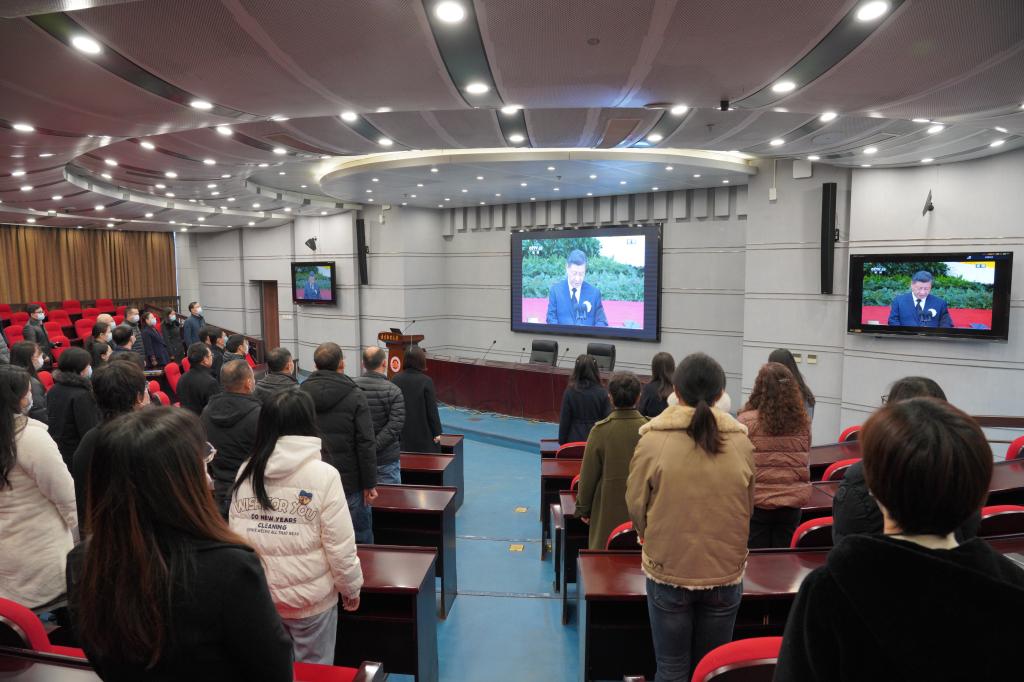 各二级党组织、各党派(团体)基层组织师生员工在分会场集中收看追悼大会直播